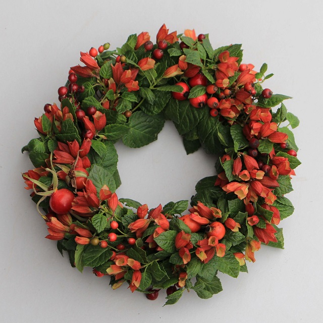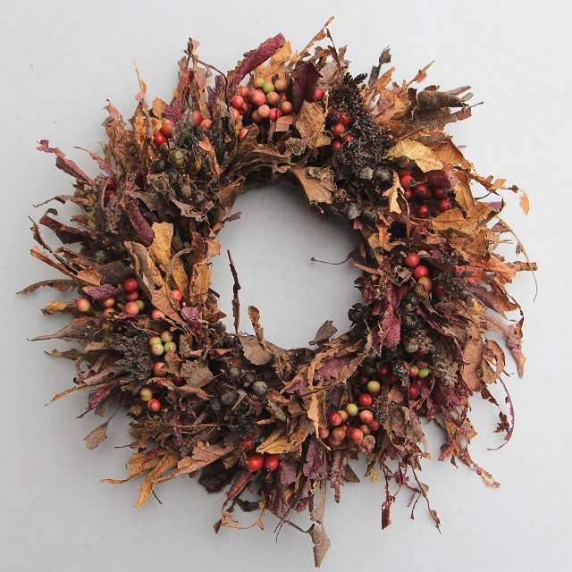 紅葉のリース庭木も色付いて