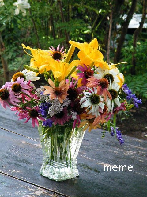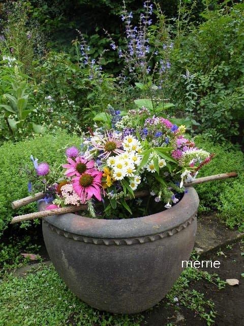 庭の花を摘んでアレンジメント