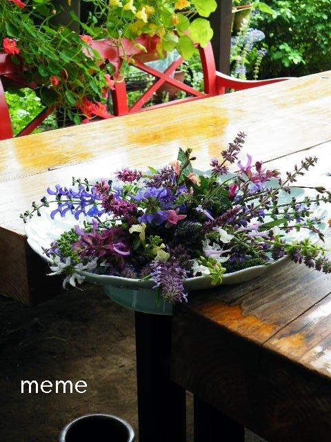サルビアの花をお皿に生けて