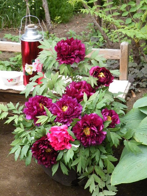 庭の牡丹を生けて