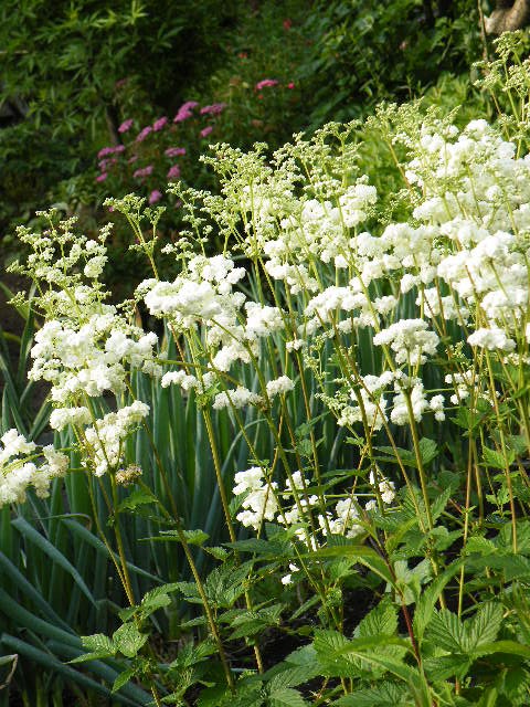 6月7月の庭でクリーム色のちいさな花を房状に咲かせるメドースイート。Queen of the Meadow とも言われ和名はセイヨウナツユキソウだそうですね。寒さに強くて丈夫で、株は大きくなり種もこぼす世話要らずです。庭の花を手折りながら歩く時、この花茎はなかなか切れずに抵抗するのですよ。‘直に散るの、ここで見てちょうだい’というメッセージだと思うことがあります。