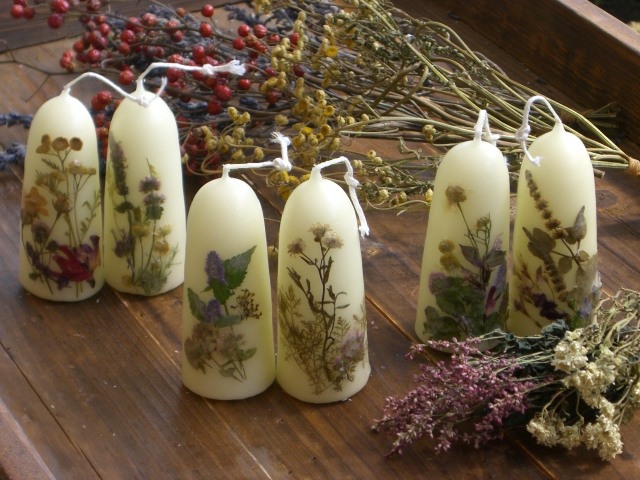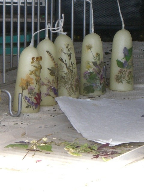 ハーブの押し花を貼って~キャンドル作り |