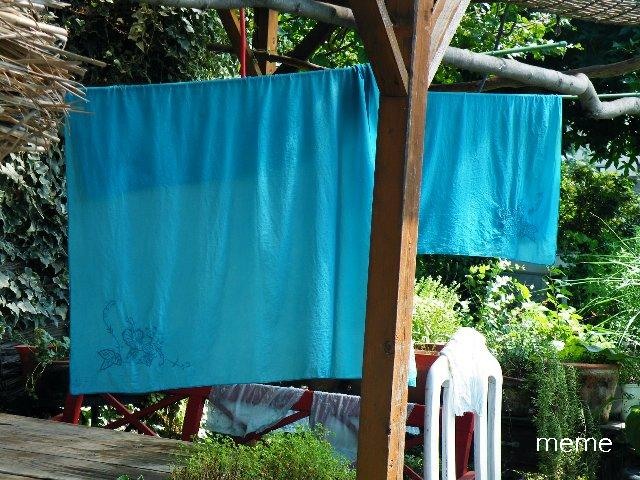 いつの日か藍染をしてみたいと育ててきましたが発酵から始めるのは大変で、素人の私には到底できそうにありません。然し摘みたてのタデアイの葉を使って‘藍の生葉染め’は簡単にできました。空気にさらす度に青に近づいていく美しさは感動的。それからというもの、9月のすかっと晴れた日に毎年染めたくなるのですよ。