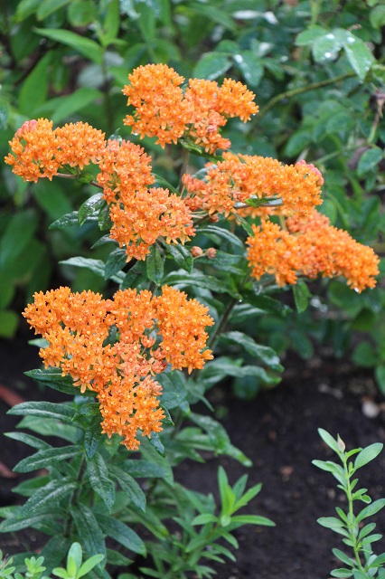 手元のハーブの本にはプルーリジールートPleurisy Root 、Asclepias tuberosa アスクレピアスチュベロサ、アスクレピアス チュベローサで載っています。ガガイモ科の多年草で和名はヤナギトウワタですね。冬は地上部がなくなりますが、時期になると芽を出してまたオレンジ色のはっきりした花を咲かせます。そして花が終わるとおたのしみの羽毛が朔果から出てくるのですよ。ふわふわと高級品のシルクのようです。