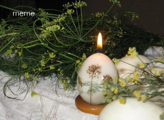 たまご形キャンドル作り~フェンネル、ディルの花を貼って |