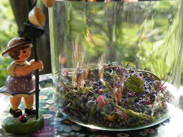 熟成もう少しかな?と思ったドライポプリまで今日はハーブクラフトに使ってしまいました。材料は 庭で収穫をしてドライにしたバラ、ラベンダー、ベルガモット、レモンバーベナ、ミント、オリスルート(保留剤として)。台所のスパイス。それにローズとラベンダーの精油を大サービスしたものでした。ローズの精油を垂らす時、何年経っても息を押し殺してしまうのですよ・・値段がお高いからっ^^