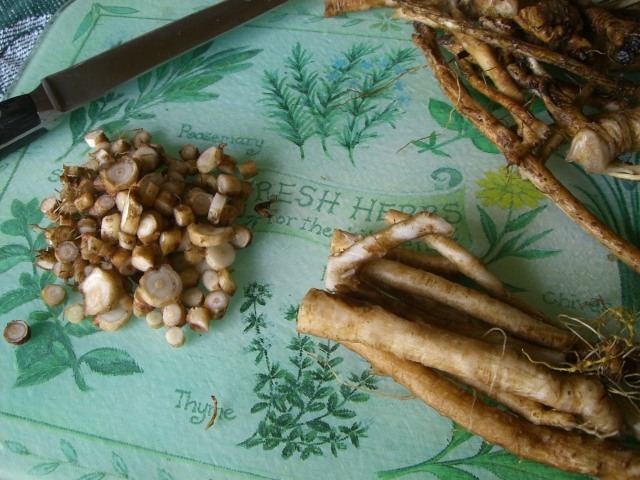 見慣れたセイヨウタンポポ。ダンデリオンDandelionですね。うちの庭では春だけでなく初夏まで気まぐれに咲いているのを見かけます。花も葉も根もそれぞれ薬効や用途があるのですが、今日はタンポポコーヒーです。10月~11月頃、大きそうな株をいくつも堀って根を収穫。