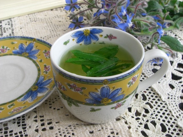 お湯を沸かしている間にハーブをぷちっとして洗い、直接カップの中へ。お湯を注ぎソーサーで蓋をして3分間。‘蓋をして精油を閉じ込める’事は重要!です。まだハーブティー専用カップとかポットとかを持っていなかった頃からの入れ方なのですよ。今でも‘いろはのハーブ’はこの方がおいしく感じます。