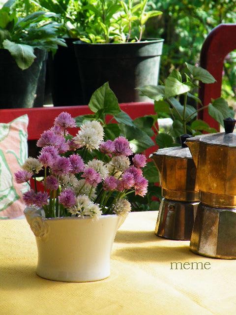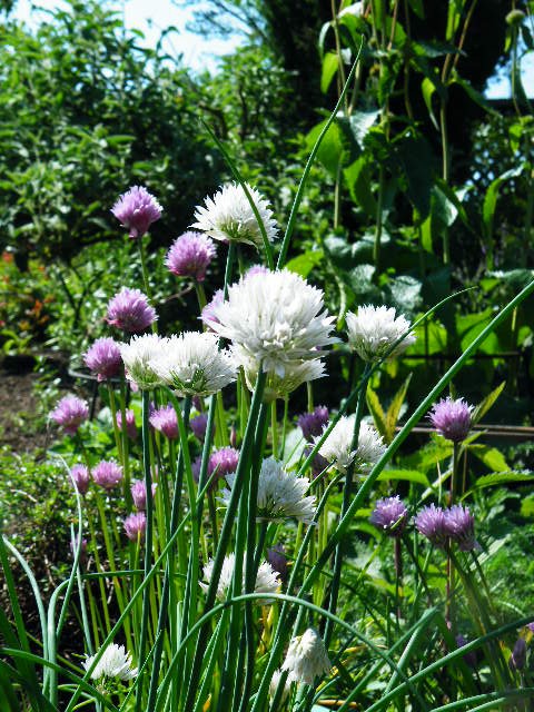 チャイブは何時までも花を食べたり眺めたりしていると葉が硬くなってしまいます。次の柔らかい葉を早く収穫したい時は花を咲かせない方がよいので迷いますね。こぼれた種から糸の様に細い芽を出して増えていますが、主に株の更新を兼ね様子を見ながら株分けで増やしてきました。