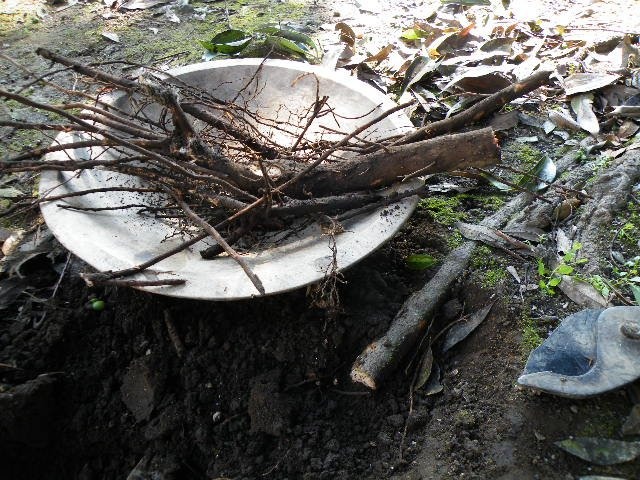 ニッケイ(肉桂)Cinnamomum okinawense が高木になり、夏場はこの日陰でハーブを束ね、お茶をします。木の下に目を遣ると、支えるごつごつした根が四方八方に地表に出ているのが分かります。深い根を掘り上げるのは苦労と思いますが、この出ている根の頃合いの太さの所を少し切り取るのは楽ですね。シャベルを使い細い根を付けたまま掘り出すとあの駄菓子屋さんのニッキの匂いが鼻に届きます。駄菓子屋さんの細い根の小束の、ほんのりした甘みと辛味を懐かしいと思われる方もいらっしゃるでしょう。