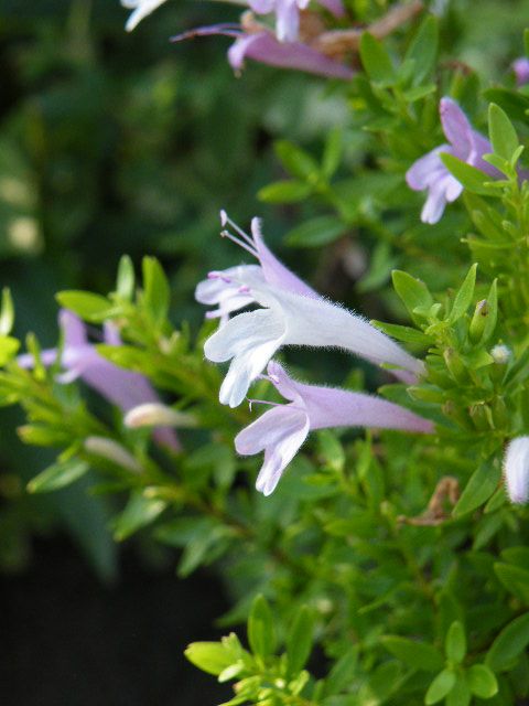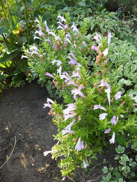 メキシカンオレガノと呼ばれるハーブのうちのひとつ Poliomintha longiflora は、薬用や香辛料として使われるそうですね。咲き始めはピンクで咲き終わりは薄いピンク、トランペットのような可愛らしい花が6月~7月に咲きます。常緑小低木で90cm位になるそうですがうちでは60cm位で、戸外で越冬しています。Rosemary mintとも呼ばれますね。そんな雰囲気の葉を持つハーブです。