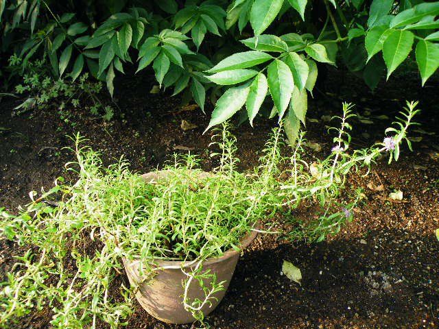 ぱっと見はミントに見えないハーツペニーロイヤルミントが咲いています。細長い葉でカールしている感じが印象的です。草丈も低いですね。しかし摘まむとしっかりミントの匂いがします。もう20年以上育てていますが、花を見た年の方が少ないのですよ。以前株分けをして苗をあげた友人は、‘元気はいいけれどノンフラワーじゃないの? ’とずうっと言っていますので、未だに咲かないようです。申し訳ない気がちょっぴりしますが、‘濃い目の藤色の花がいつか咲くから処分しちゃ嫌よ’と伝えてあります(笑)。 実は私も、長く育てていますが未だに詳しい事が分からないミントのひとつなのですよ。様子だけガーデンメモに加えておきたいと思います。口にする時は気を付けた方がよさそうですね。押し花や生け花にしています。