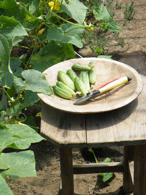 折角ディルが生えているのですから、ピクルス用のキュウリも育てたいと思っていましたら、娘から貰ったお土産の園芸雑誌に種子の付録があり、それが初めての栽培になりました。蒔いた時期も良かったようで、綺麗なピクルス用のキュウリを収穫することができたのですよ。