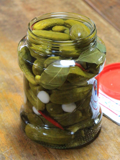 さて、ピクルス用キュウリの栽培です。うちはポリポットに蒔いてしっかりした苗にしてから家庭菜園に定植しています。栽培は普通のキュウリに準じる、でよいと思いますが、数年育ててきて少し違うと感じるのは、収穫期間の終わりが普通のキュウリよりも早いということです。良いものが採れるのは6月の終わり頃までで、蒔く時期と定植する時期が遅くならない様に気を付けています。素人の栽培で本来の目安にはならないかもしれませんが、苗を3つ植えて塩漬け発酵ピクルスが3リットルの保存瓶2つ分位です。