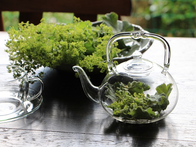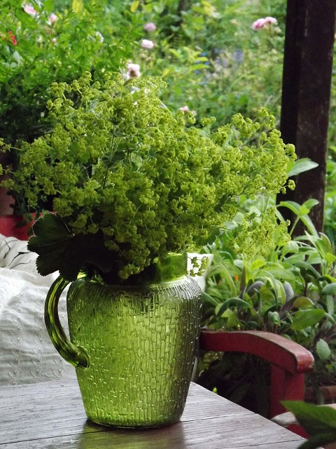 レディースマントルの若葉のサラダは香りが強くほろ苦さを感じます。ハーブティーにする葉や花はドライの方が薬効が高いそうですので張り切って乾燥させておくのですよ。使用には注意が必要とのこと。美しいフレッシュのティーも飲みたいですね。植栽やアレンジ、ドライフラワーも素敵です。5月の露で顔を洗うと美しくなるという迷信がありますが折しも5月、レディースマントルの葉に集まった露ならば更に美しくなれるかしら、ネ?!