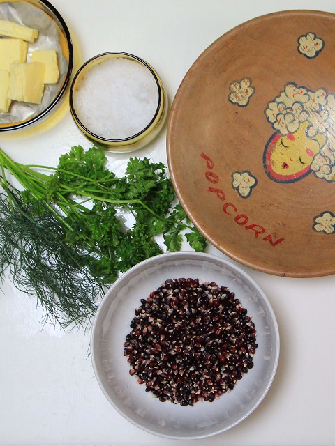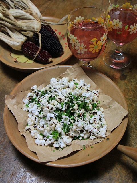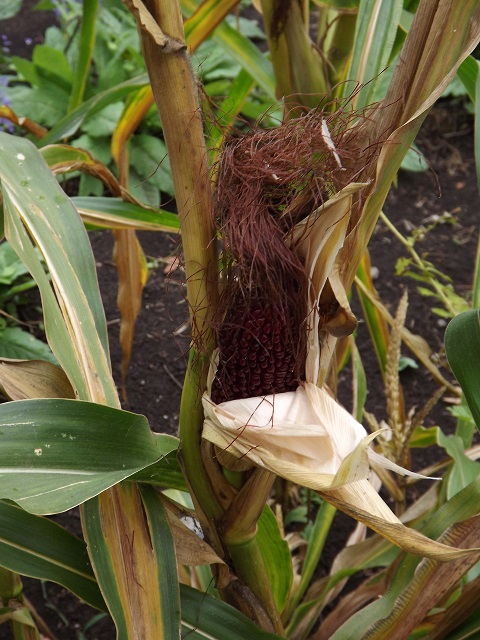 家庭菜園で育てたい野菜の種子をカタログの中からとつおいつしながら選ぶ中、写真を見て何のためらいもなくマジックで大きな丸を付けたストロベリーコーン Strawberry Cornでした。栽培は今年で4年目になりますが、可愛くて装飾的、ポップコーンにおいしい、栽培は一般的なとうもろこしに準ずる、次に蒔く種子の確保はバッチリとすっかりレギュラーになりました。 このストロベリーコーン(イチゴとうもろこし)は10cm前後の小型で美しいルビー色です。約3か月で収穫できますね。うちはポリポットに種を蒔き苗にしたものを3〜4本植付けるのですが、これで結構遊べて食べられます。ネーミングは、果実が付いた穂軸丸ごとの形から?それともひと粒ひと粒の果実の形から?どちらも正解そうな感じです。何れにしましても保存がきき台所に転がしておくだけでも可愛いです。そしてフライパンにひとつかみのストロベリーコーン、適当なバター。仕上げに塩と刻んだフレッシュハーブ。ちゃちゃっとハーブポップコーンが出来上がります。