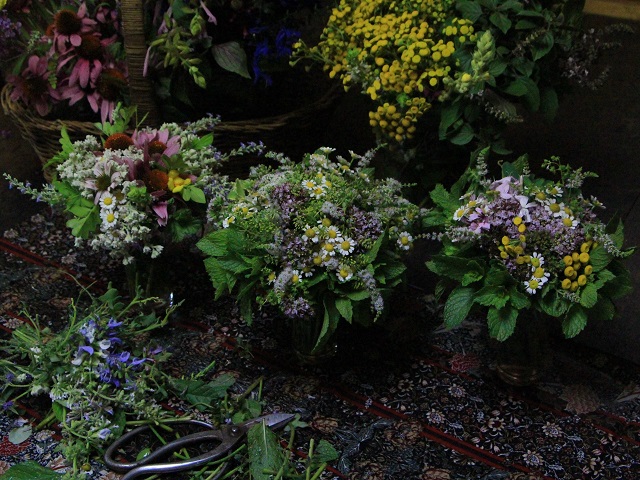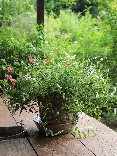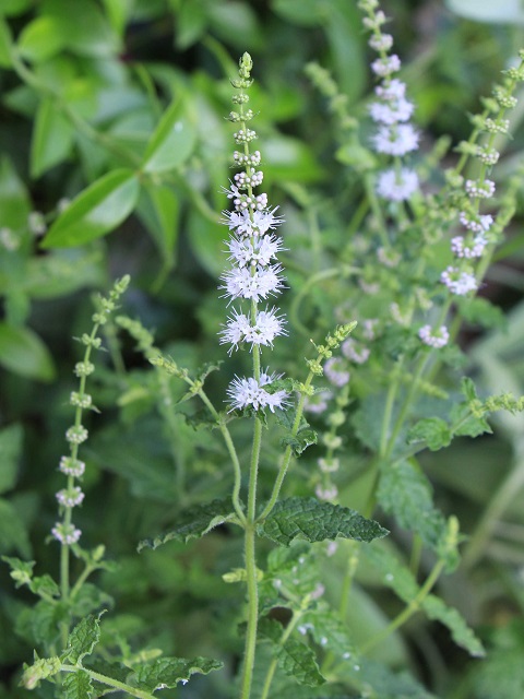 ストロベリーミント Mentha spicata ‘Strawberry’ は全体的に小型なミントで、茎を横にも元気に伸ばします。摘み取りを兼ねて剪定や頃合いをみての切り戻しをしています。6月〜8月と次々と咲く花はスペアミントのミニチュアのようで可愛らしく、他のミントよりも比較的長い期間摘むことができるように思います。ドライフラワーにも向きますね。小さ目な葉は細かい皺があり濃い緑で、茎は細いながらしっかりとしています。タッジーマッジーなどのアレンジの花材として扱い易いです。ティーや料理などにも使われますね。栽培は一般的なミントに準じます。