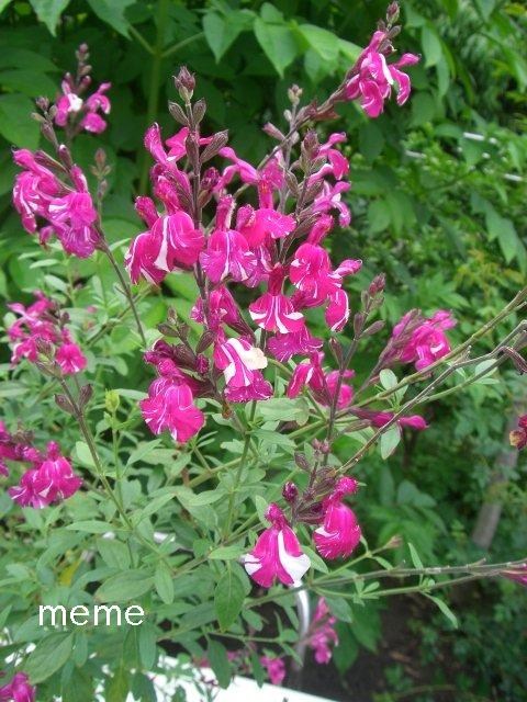 ミクロフィラ S..microphylla もグレッギー S.greggii もそして両種の交配種のヤメンシス Salvia x jamensisなども花の形が良く似ているのでチェリーセージの別名で呼ばれることが多いですね。花色だけでみたらずいぶんたくさんありそうです。それぞれに特徴があるようですが、私はいくつもの品種の名前が宿題になっています。