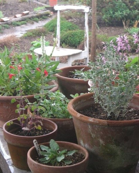 昨日は雨、風ともに強かったです。ハーブやサルビアの鉢が転がって、植えつけたものは揉みくちゃにされて・・と悲惨なことを想像していましたが取越しだったようです。小振りになった雨の中、何事もなかったようにサルビア ヘンリーが咲いていましたホッ。ほとんどのハーブやサルビアはまだまだこれからですが、ひと雨ごとに伸びていくことでしょう。