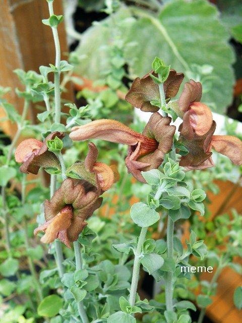 Salvia aurea サルビア アウレア (S.Africana lutea アフリカナルテア)が咲き出しました。喜望峰辺りが原産だそうですね。重なるように付く小さな葉はこれだけでも美しくて花のように開いていきます。‘あっ花かもしれない’と何度糠喜びしたことかしれません。 実際の花は、ガクも含めて、それぞれ時間と共に独特な茶色が変化していきます。このグラデーションもそうですが随分ユニークな形をしていて面白いサルビアです。