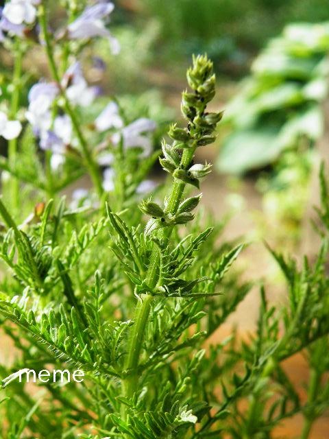 サルビア スクレクテリのさわやかな緑の葉は、裂け方が変わっていますね。馴染みの赤いサルビアのイメージからまたまた遠退きましたが、‘歴としたサルビア’なのが面白いです。昨年の秋に種を蒔き、小さなポリポット苗にして越冬、寒さでダメージを受けたものの緑は残っていました。今年3月に鉢に植え替え、そして5月になると次々咲き始めました。陽で遊ぶ薄い青の花が‘涼やかで美しくて’。鉢ごとかざして眺めてみたりしていたのですよ。草丈30cm程、コンテナガーデンにも向くサルビアだと思います。
