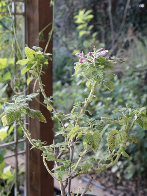 種の整理をした時に残っていたSalvia squalensの種を蒔いてみました。時間が経った種でしたが発芽をして、咲いた花は薄ピンク色と言ったらいいのでしょうかライラック色と言ったらいいのでしょうか、今までと違う色だったのですよ。オレンジの花が咲くS. squalensと比べますと完全に開ききらない様な咲き方で、草姿はスリム、弱々しい感じです。鉢植えで4年目になる今年も、夏場は下の方の葉が落ちて棒のような茎になりましたが、暑さが引いてくるに連れ咲き出し、小さな葉も育ち始めました。虫が付きやすく心配ですので、また挿し木をしておこうと思います。